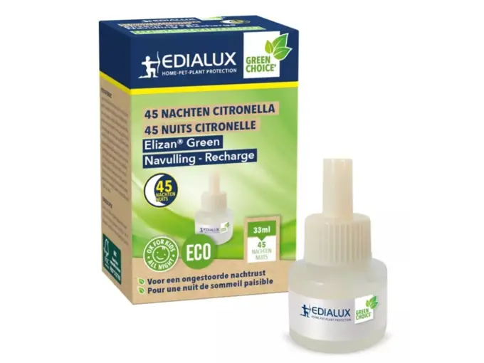 Edialux Elizan Green navulling citronella 45 nachten - 33 ml € 5, 99 Beschikbaar Dit product is op voorraad.