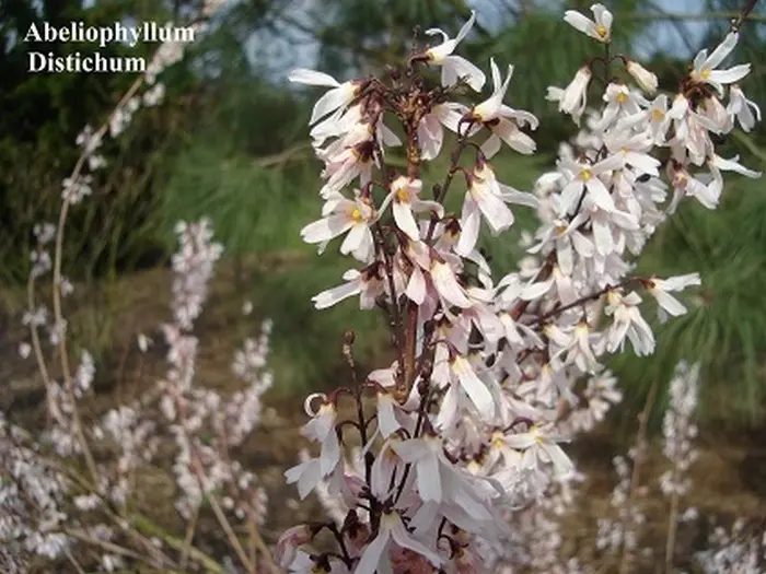 Abeliophyllum distichum afkomstig uit Korea, is een struik met een vrij lage bossige groeiwijze.