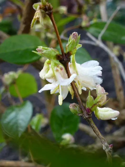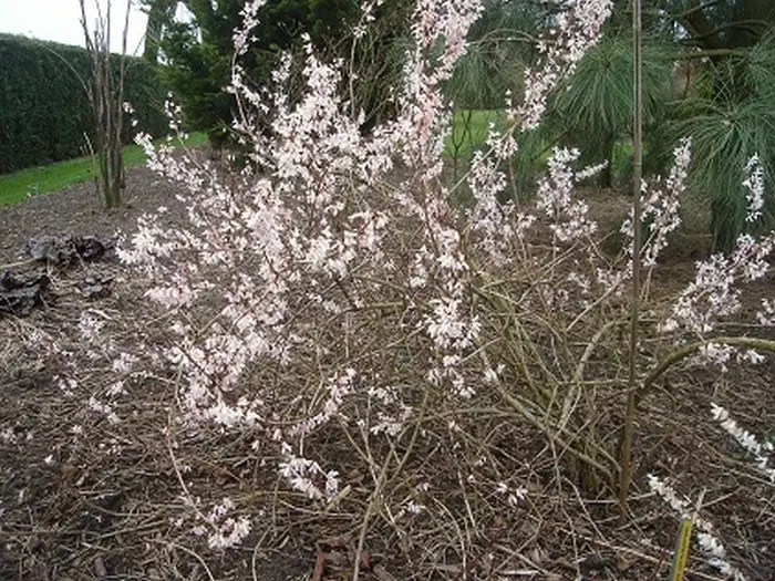 Heeft de bijzonderheid dat hij bloeit aan het einde van de winter, in februari-maart, op de twijgen van het voorgaande jaar en vóór het verschijnen van het loof.