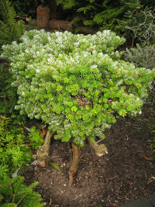Abies koreana 'Silberperl' is een traag groeiende, kegelvormige dwergconifeer.