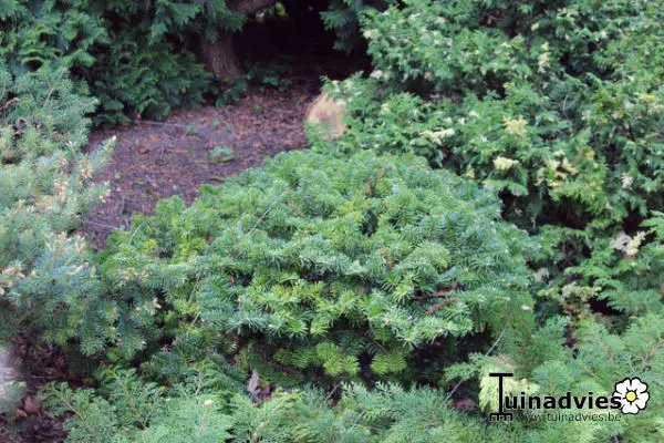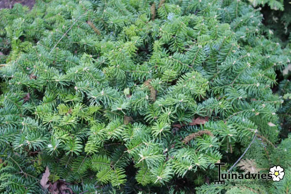 Abies koreana 'Tundra' is een vlakspreidende dwergconifeer met heldergroene naalden.