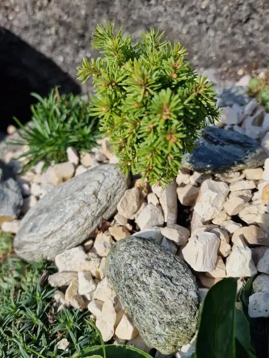 Abies procera 'Yin' is een vrij breedgroeiende dwergconifeer met blauwgroene naalden.