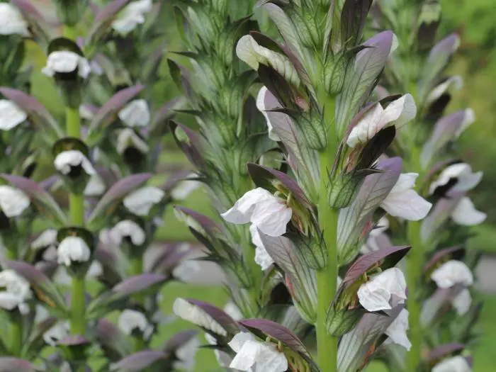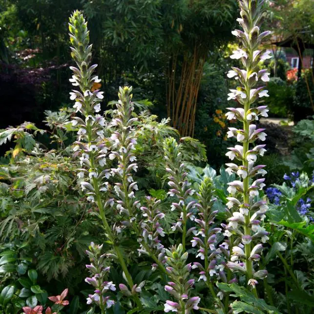 Acanthus hungaricus 'White Lips' is een statige vaste plant met een grote sierwaarde die structuur geeft in de tuin met zijn grote bladeren en aarvormige bloemen.