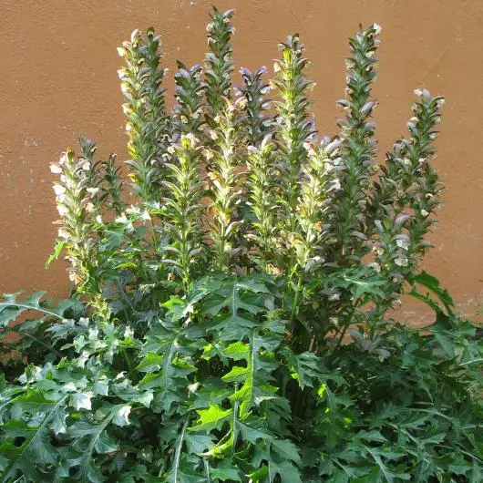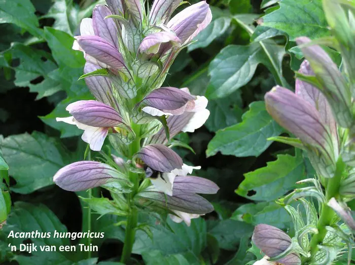 Acanthus hungaricus is een statige vaste plant met een grote sierwaarde die structuur geeft in de tuin met zijn grote bladeren en aarvormige bloemen.
