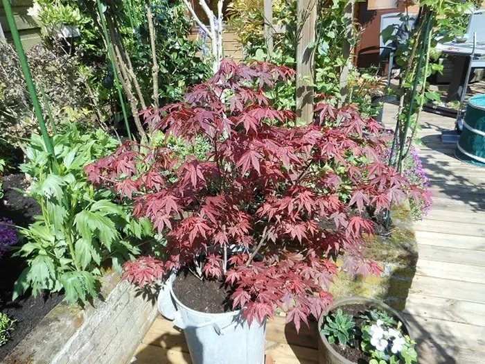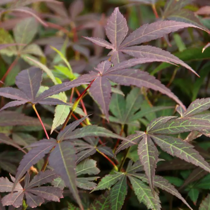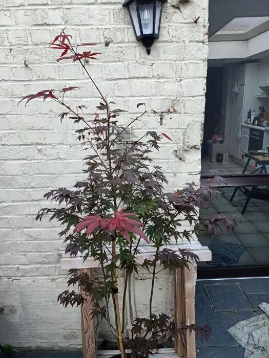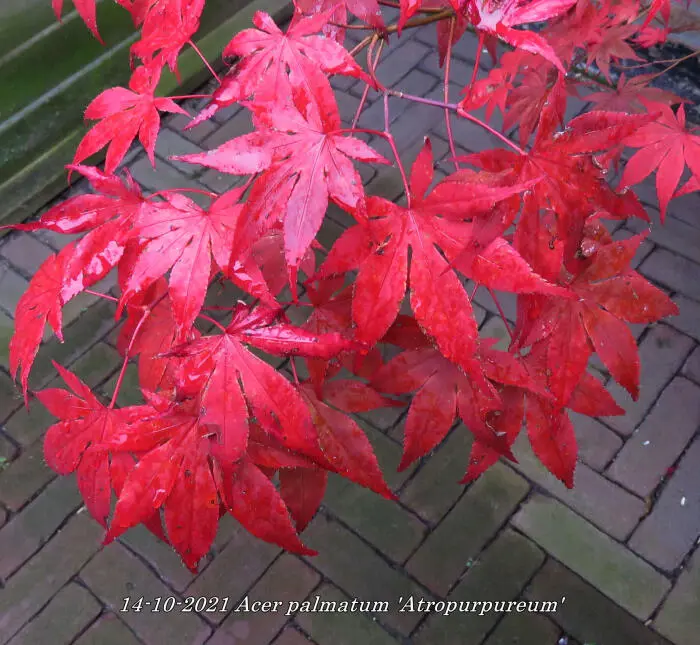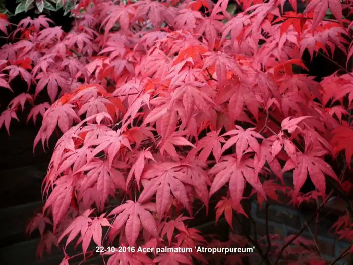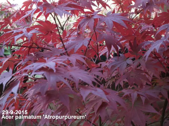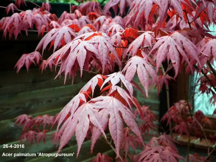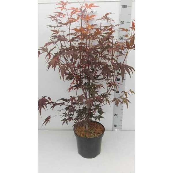 Acer palmatum 'Atropurpureum' is een langzaam groeiende heester/boom met een opgaande brede groeiwijze en iets overhangende takken.