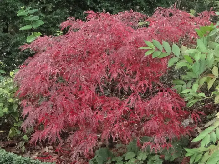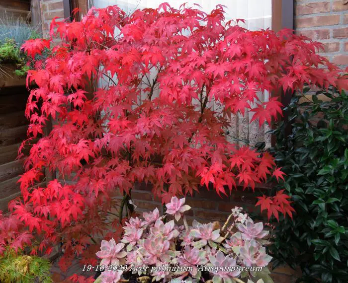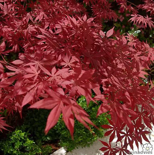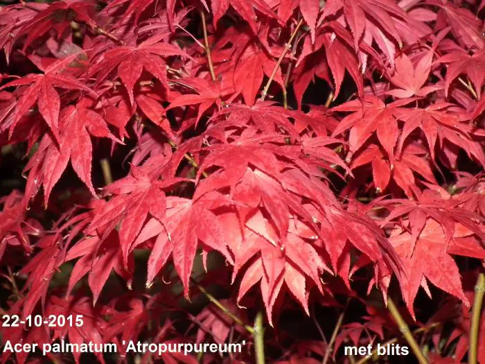 Het blad is glanzend donkerrood tot paars met een prachtige rode verkleuring in het najaar.