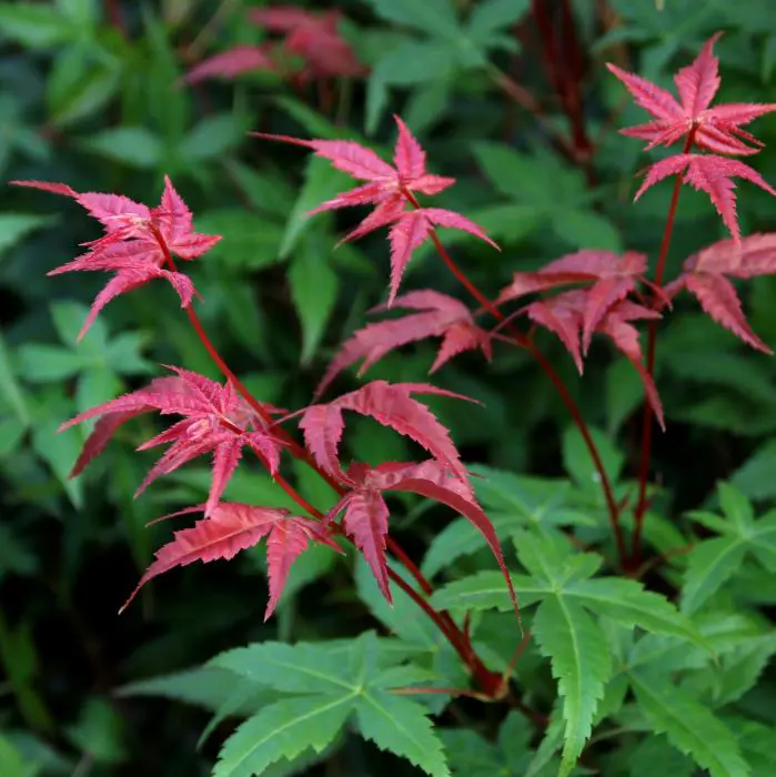 Deze Japanse esdoorn wordt beschouwd als een van de helderste met zijn kleurrijke variabele bladeren.