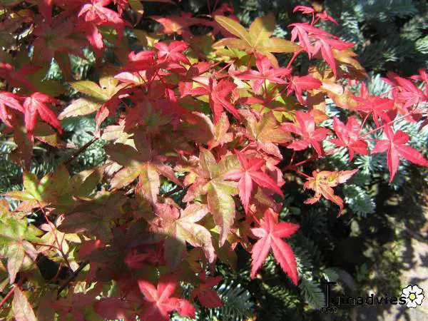 In het voorjaar loopt het blad meer zalmroze uit, wordt dan lichtgroen, roze/rood gespikkeld in de zomer en kleurt dan in het najaar naar prachtige scharlakenrode herfstkleuren.