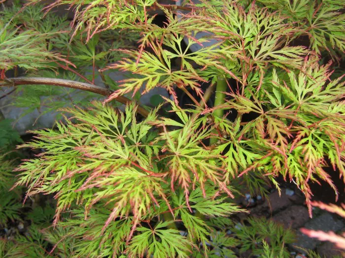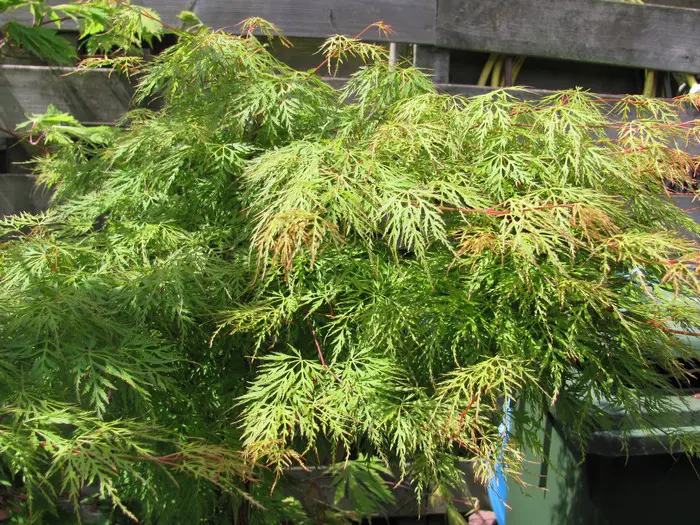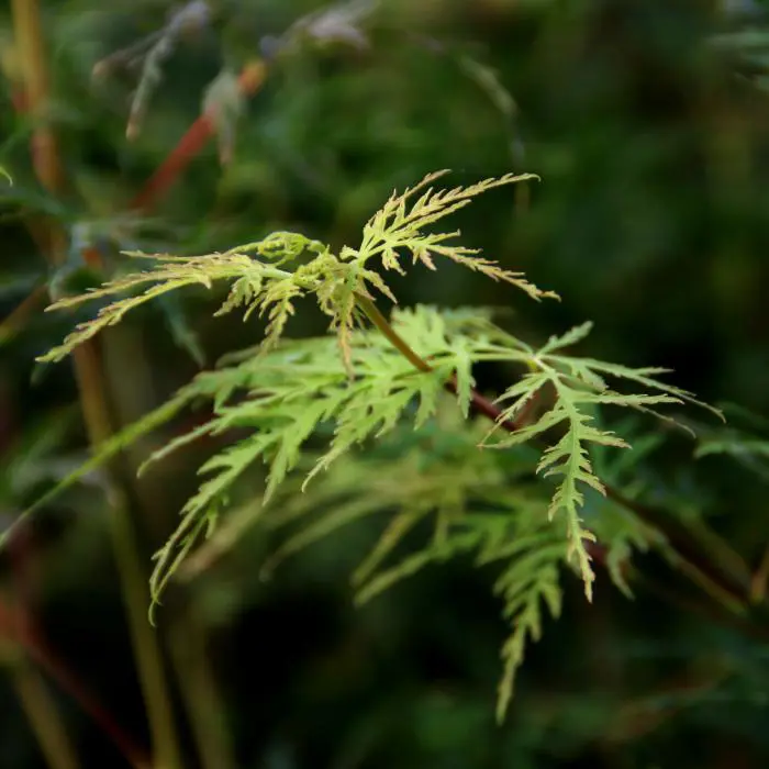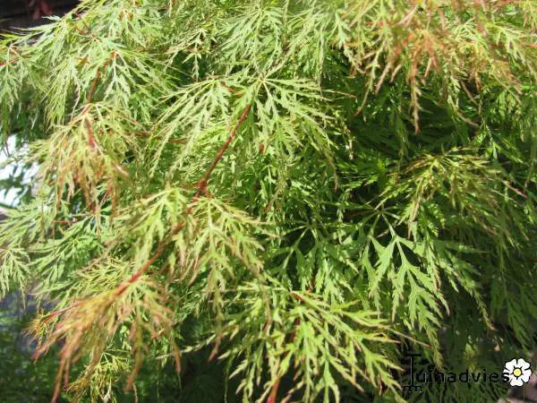 Acer palmatum 'Emerald Lace' is een heester of kleine boom, krachtig en compact met een licht treurende groeiwijze.