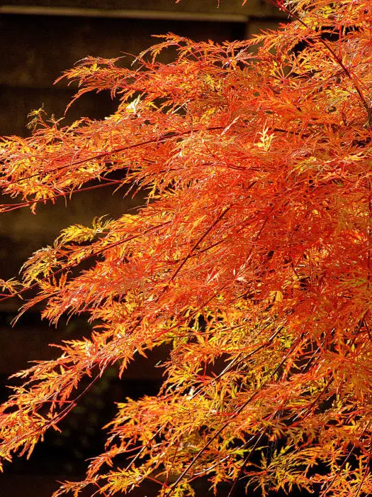 Het blad is zeer fijn en diep gesneden in dunne reepjes. Het verkleurt van licht lentegroen naar smaragdgroen in de zomer om in de herfst prachtige oranjerode kleuren aan te nemen.
