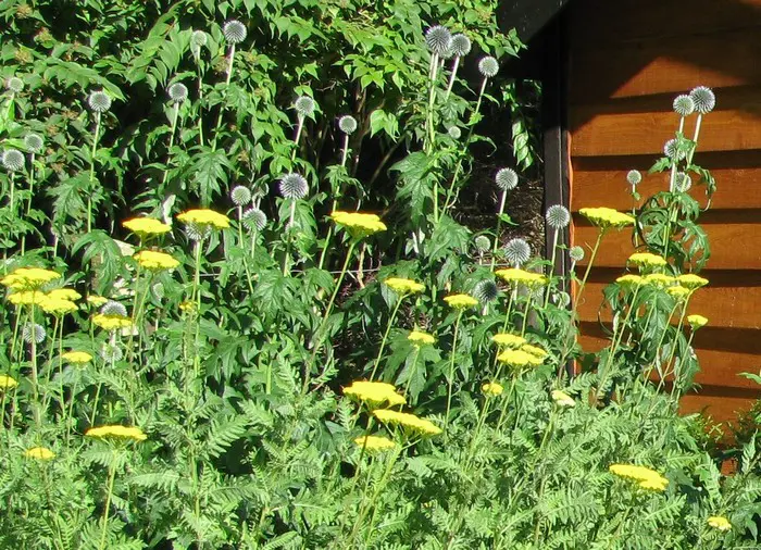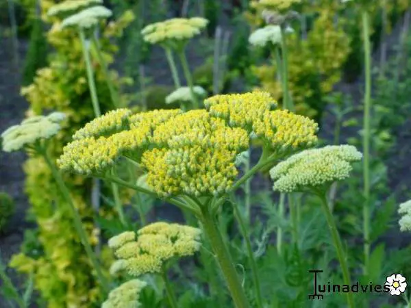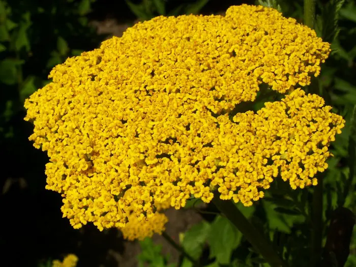 Achillea filipendulina 'Cloth of Gold' is een snelgroeiende, bodembedekkende plant met fijn gesneden, zilvergrijs behaarde groene bladeren en afgeplatte schermen van citroengele bloemen.