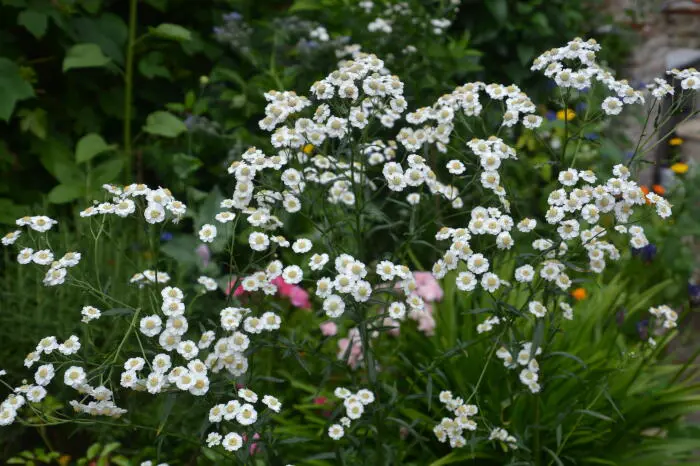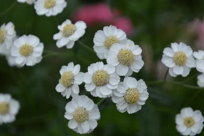 Bloeit wel met 10 witte bloemhoofdjes per bloeiwijze.