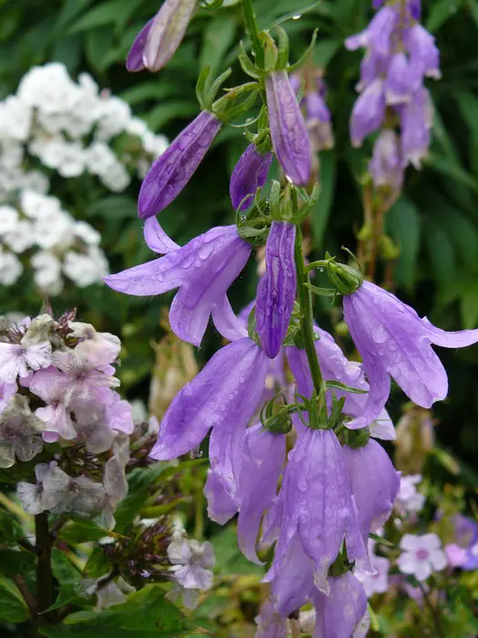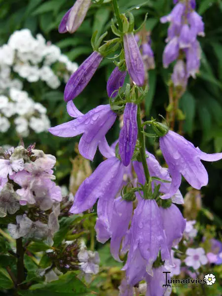 Adenophora 'Amethyst' bloeit rijkelijk de ganse zomer lang met aren van amethistblauwe klokvormige bloemen.