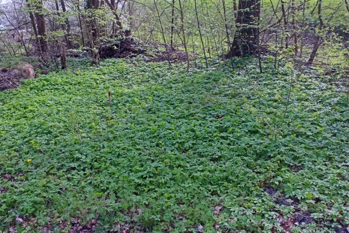 De plant heeft kruipende, ondergrondse uitlopers (rizomen) en elk afgebroken stukje geeft een nieuwe plant.