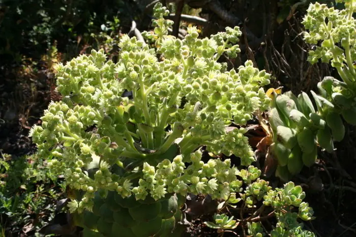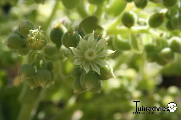 Na de bloei sterft de bloeiende rozet.