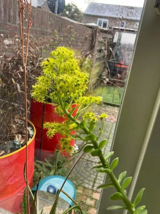 Na de bloei sterft de bloeiende rozet.