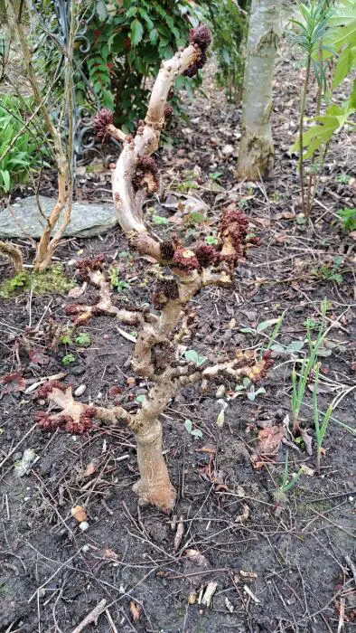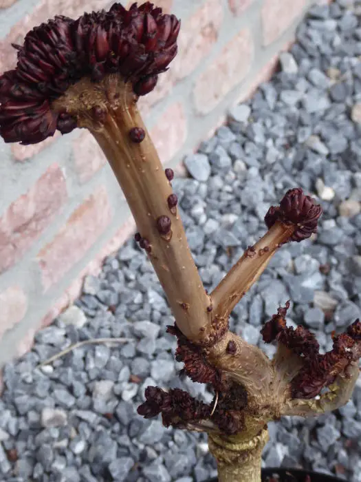 Aesculus hippocastanum 'Monstrosa' is een langzaam groeiende dwergkastanje met een onregelmatige vorm en gedraaide bandvormige takken. Wordt na 10 jaar 75-100cm hoog.