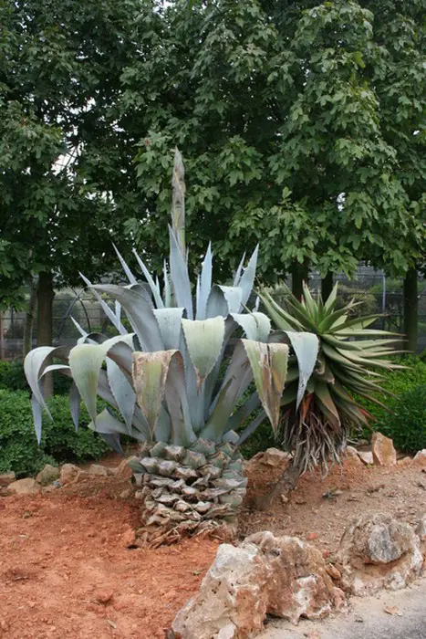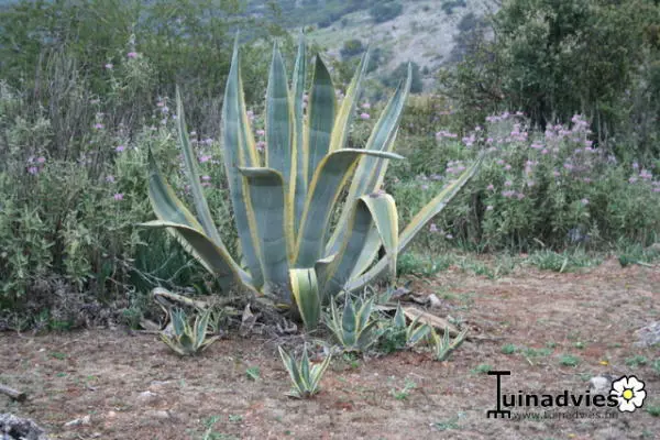 De honderdjarige aloë vindt zijn herkomst in Mexico en Midden-Amerika. Bij ons is deze succulente plant onvoldoende winterhard(-5°C) en wordt best overwinterd in een tuinkas of serre.