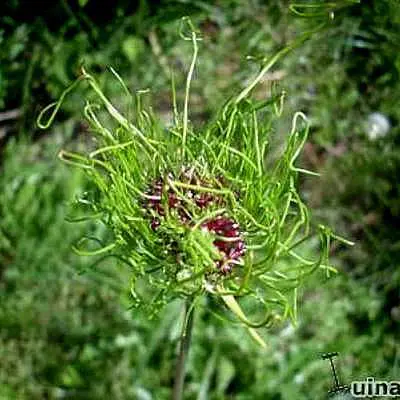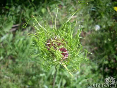 Bloeit op stevige rechtopstaande stengels met appelgroene bloemen met lange naaldachtige bloemblaadjes en een paars centrum gevolgd door opvallende zaadhoofdjes.