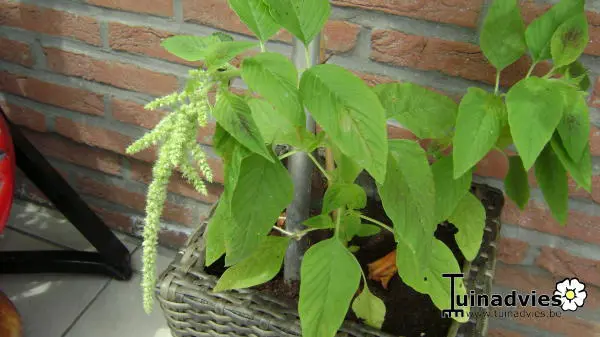 Amaranthus caudatus 'Green Cascade' is een fors groeiende plant met lange groene bloemtrossen als staarten.
