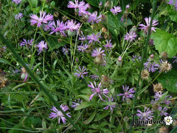 Amberboa muricata 'Desert Star' bloeit met ijle lilaroze korenbloemachtige bloemen op hoge vertakte stengels. Ook het hart is van dezelfde kleur.