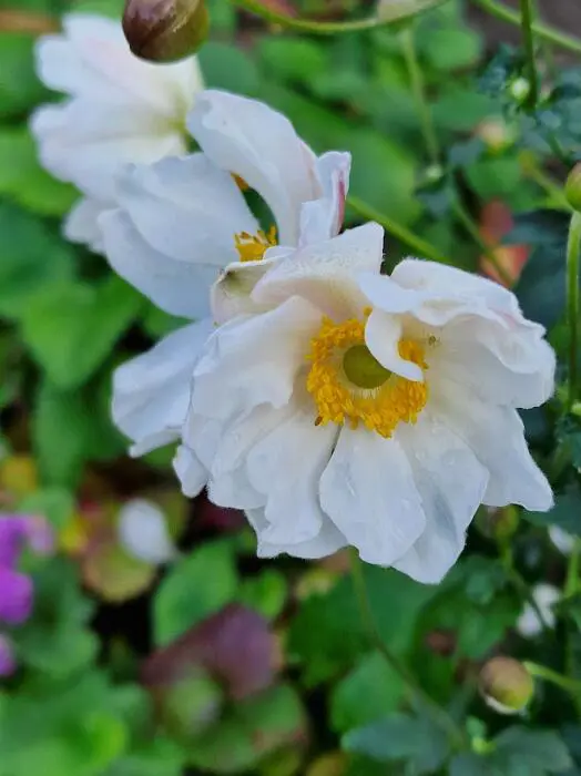 'Rapunzel' bloeit in het najaar met een overvloed aan halfgevulde witte bloemen met goudgele meeldraden in het hart.