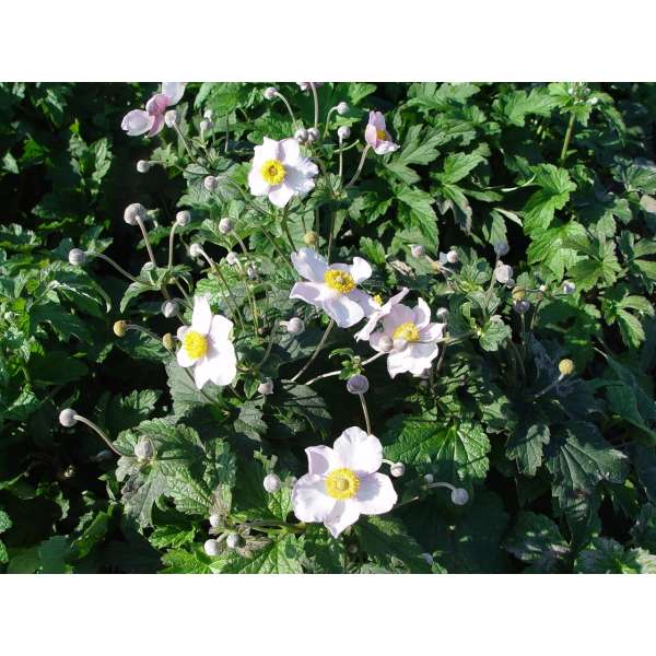 Anemone tomentosa 'Robustissima' is een prachtige vaste plant met middelgroene bladeren en vertakte stengels met meerdere bloemen aan de uiteinden.