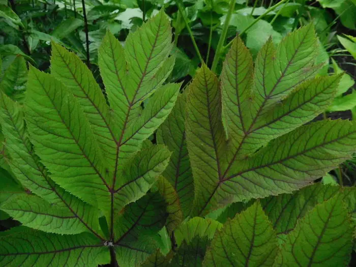 Ook het groen blad is decoratief, getand, gelobd en 30-40cm. lang.