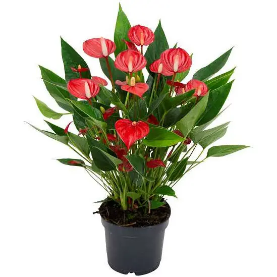 Anthurium andreanum MILLION FLOWERS Red is een rijkbloeiende variëteit en wordt in ons klimaat beschouwd als een kamerplant.