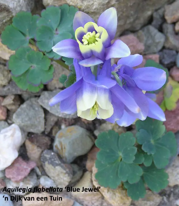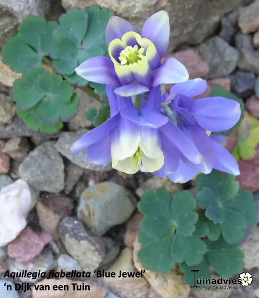 Aquilegia flabellata JEWEL-series zijn lage akeleien waarvan verschillende cultivars van bestaan: