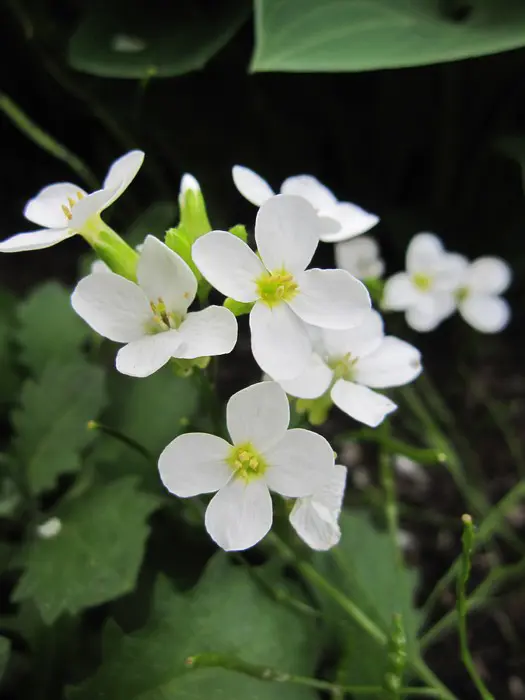 Arabis is een geslacht waarvan er wel honderd soorten van bestaan (zie plantengids). Het zijn bekende lage voorjaarsbloemen voor rotstuinen en muurtjes. Ze zijn wintergroen en vormen een laag kussen van grijsgroene blaadjes en witte of roze bloempjes.