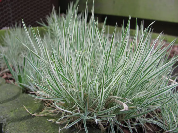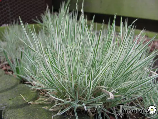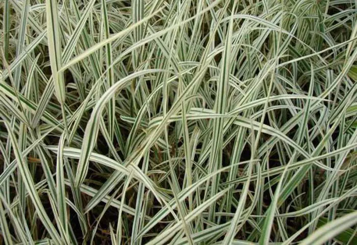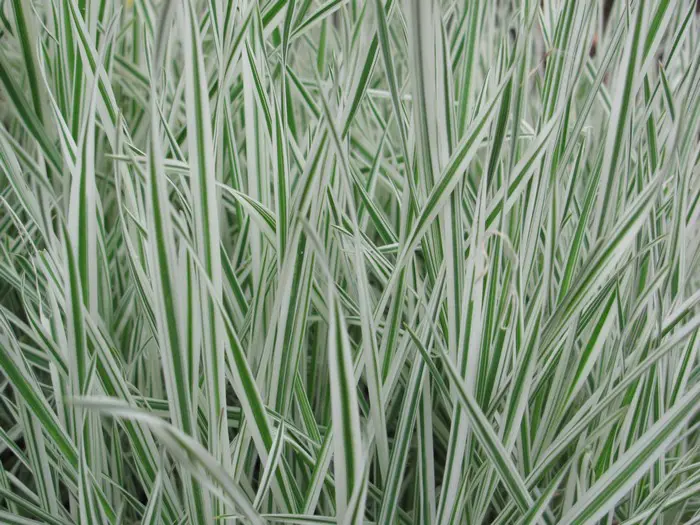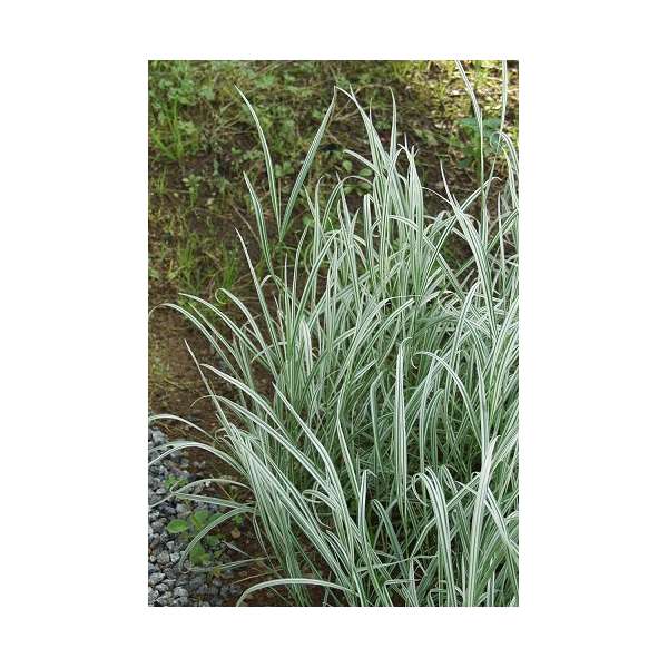 Siergras met geelwit gestreept zilvergrijs blad.