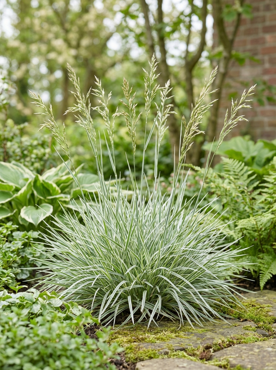 Siergras met geelwit gestreept zilvergrijs blad.Voor een droge zonnige standsplaats