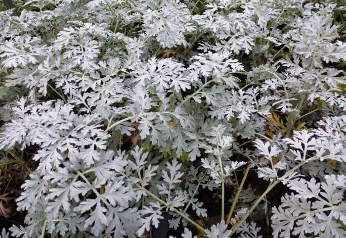 Artemisia absinthium 'Lambrook Silver' is een opgaande halfheester met aromatische, fijn verdeelde, zijdeachtige, zilvergrijze bladeren en losse pluimen van kleine, dofgele bloemen. De bloei is feitelijk onbeduidend.