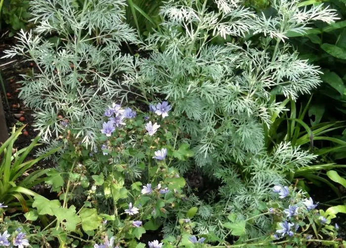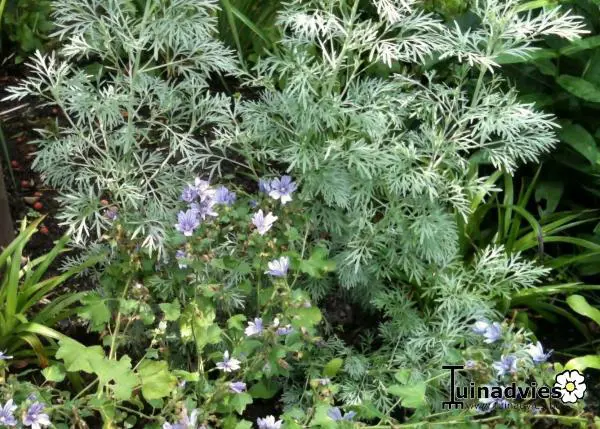 Artemisia ludoviciana 'Silver Queen' is de westerse bijvoet, bloeit maar zelden en wordt in de tuin voornamelijk geplant voor de sierlijke fijne en lange zilvergrijze bladeren.