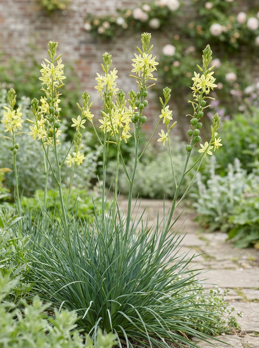 De bladrozetten zijn fijner van structuur en de plantopbouw is veel losser met strogele bloemen.