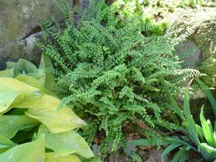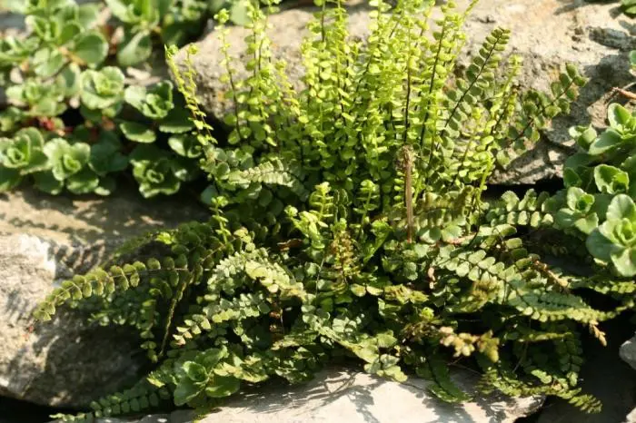 Een groenblijvende varen dat ook als bodembedekker kan dienen met donkergroene veren waarvan de ovale blaadjes aan donkerbruine stelen staan.