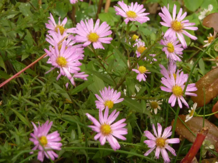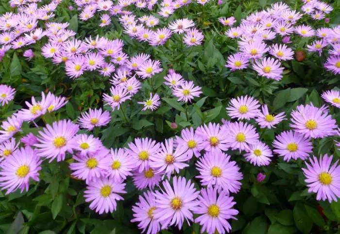 Aster dumosus 'Herbstgruss von Bresserhof' is een bossige vaste plant, met een compacte, kussenvormige groeiwijze en lilaroze margrietachtige bloemen met een goudgeel hart.