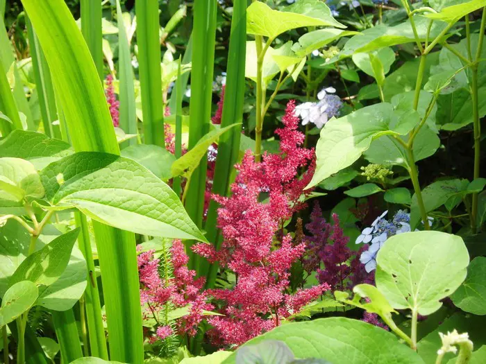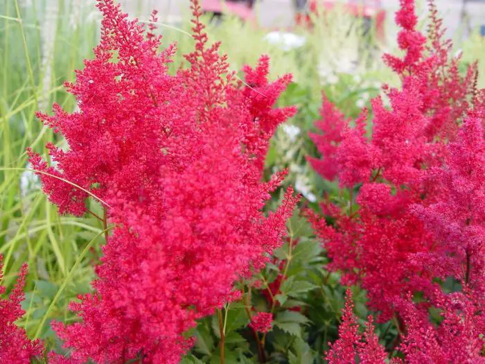 Astilbe japonica 'Red Sentinel' is een waardevolle plant met mooi gevederd blad en donkerrode tot scharlakenrode pluimvormige bloeiwijze.