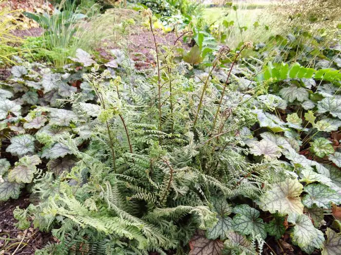 Athyrium 'Ocean's Fury' is een grote rechtop groeiende varen met overhangende zilvergroene bladeren. De uiteindes van de bladeren zijn telkens gevorkt.