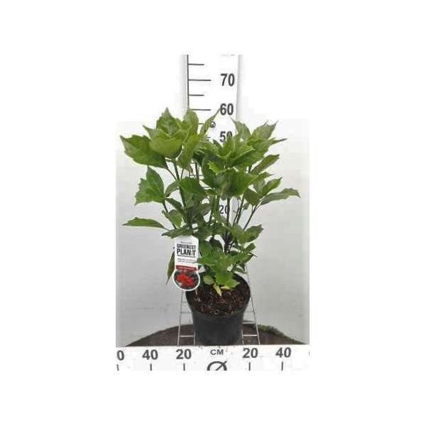 Aucuba japonica ‘Rozannie’ is een sterke, wintergroene sierheester die het hele jaar door kleur en structuur aan je tuin geeft. Deze compacte, rijkbloeiende Japanse broodboom is uniek doordat hij zelfbestuivend is en zonder mannelijke plant talrijke rode bessen vormt. De glanzende, donkergroene bladeren combineren prachtig met de opvallende bessen in het najaar en de winter.