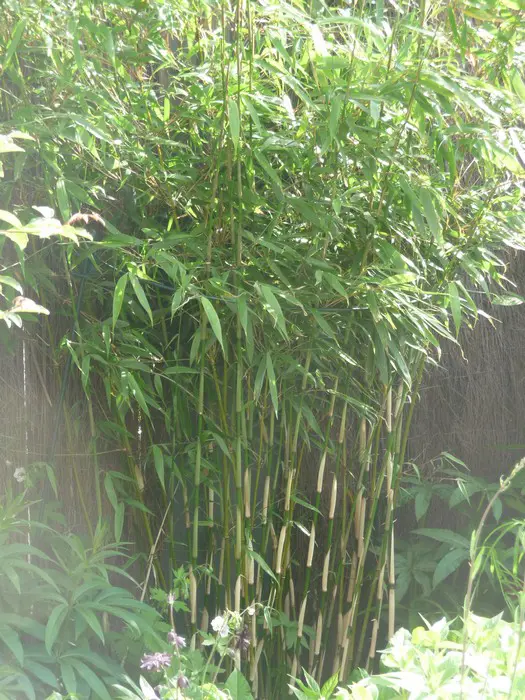 Fargesia robusta 'Pingwu' heeft groene fijne bladeren maar het meest opvallende en decoratieve aan de plant zijn de witte schutbladeren die mooi afsteken tegen de donkergroene stengel.
