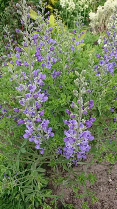 Baptisia australis var. minor heeft een op lupine gelijkende, zachtblauwe bloeiwijze maar is veel steviger en blijft ook na de bloei mooi en zonder ziektes, daar waar lupines net bladluisgevoelig zijn. Ze hebben mooi blauwgroen klaverachtige bladeren.