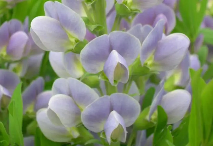 Baptisia 'Starlite Prärieblues' is wel een erg mooie cultivar, iets minder hoog maar met prachtige ijsblauwe bloemen met een tikje geel.