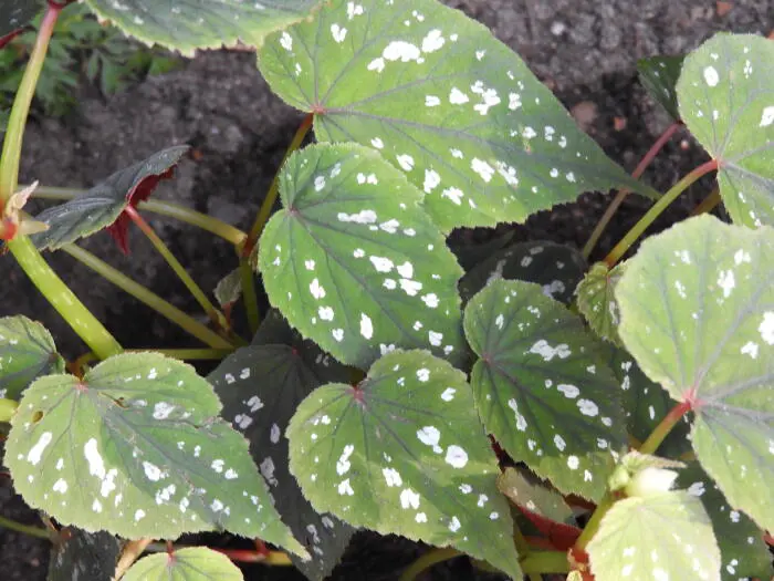 Is een (half)winterharde begonia met prachtige bladeren. Het blad is groot, blauwgroen met zilveren vlekjes en met een roestkleurige onderkant. Vooral prachtig als er zon door het blad schijnt.