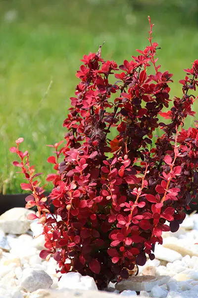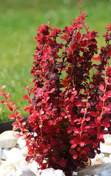 Berberis thunbergii 'Orange Rocket' is een rechtopgaande doornige struik met koraaloranje bladeren in het voorjaar verkleurend naar groen in de zomer tot een prachtige roodoranje herfstkleur.