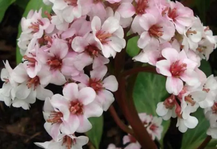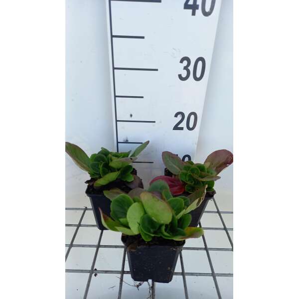 Bergenia 'Baby Doll' heeft een compacte groeiwijze met kleinere bladeren.