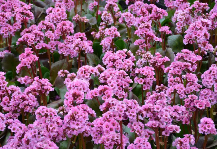 Het leerachtig blad verkleurt naar rood van zodra de nachten kouder worden, en blijft dan de hele winter aan de plant.