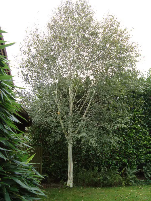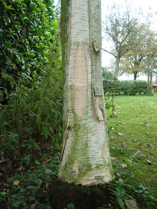 Maar het meest opvallendste is zijn mooie poederwitte bast dat na enkele jaren afbladert, onder die bast is de schors amberkleurig.