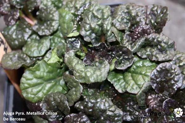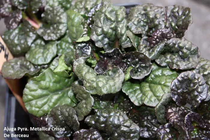 Ajuga pyramidalis 'Metallica Crispa' is een waardevolle bodembedekker met rozetten van bladeren. Het blad verschilt van de soort door zijn merkwaardig blad dat gekroesd is als peterselie. Het blad is metaalglanzend blauwpaars.